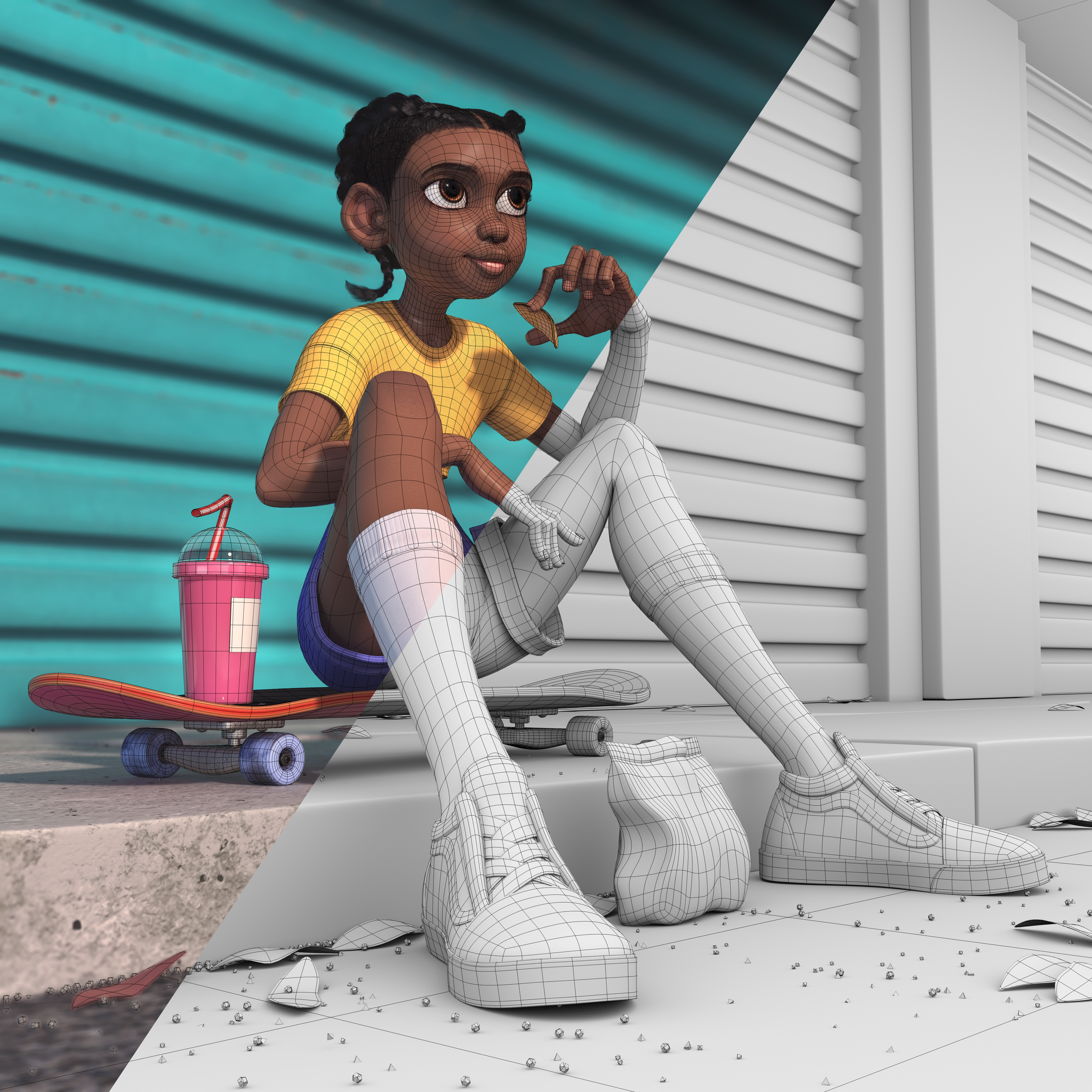 Props ( skateboard, cup and chips) modeled by Yusuff Abdurrahman https://yusuff_abdurrahman.artstation.com and textured by me.